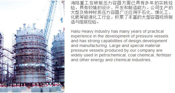 蘇州海陸重工股份有限公司位于江蘇省張家港市開發(fā)區(qū),是國內一流的節(jié)能環(huán)保設備的專業(yè)設計制造企業(yè),目前并已初步形成鍋爐產品、大型壓力容器、核電設備、低溫產品、環(huán)保工程共同發(fā)展的業(yè)務格局。公司創(chuàng)建于1956年,注冊資本51640萬元,占地面積近50萬平米。公司下設八個控股子公司,一個余熱鍋爐研究所,在瑞士、北京、武漢、南京、上海、杭州、廣州等地設立分支機構,擁有雄厚的研發(fā)實力。公司秉承“科技領航、業(yè)界先鋒”的發(fā)展理念,注重研究廢熱、余熱利用和環(huán)境保護相結合的新技術研發(fā),自主設計能力居同行前列;公司承擔過國家863計劃,江蘇省科技成果轉化專項資金,榮獲國家科技進步二等獎,產品擁有核心自主知識產權并取得專利50多項;公司推行國際先進的管理體系標準和認證,擁有 A級鍋爐制造許可證,A1、A2、A3級壓力容器設計和制造許可證,取得了民用核承壓設備制造資格許可證、美國機械工程師學會(ASME)“S”、“U”鋼印,通過了ISO9001質量體系認證、健康體系認證和14000環(huán)境體系認證;公司設備先進,裝備精良,專業(yè)嚴謹?shù)闹圃炖砟畲蛟斐銎焚|非凡、質量一流的“海陸”品牌聲譽。